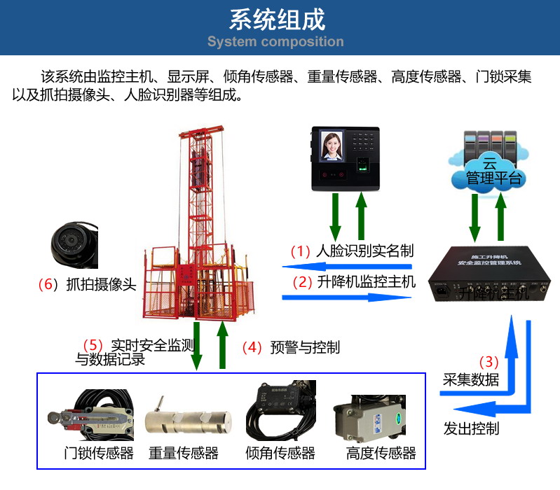 升降機安全監(jiān)控系統(tǒng),通過人工智能對“非法人員操控升降機’和”維保不及時,安全裝置易失效”等安全隱患,通過本地與云端實名制,實現(xiàn)升降機的操作人員的持證上崗,有效防止一機多人駕駛的問題;通過先進的監(jiān)測設(shè)備、精準監(jiān)測運行狀態(tài)與數(shù)據(jù),防患于未然。