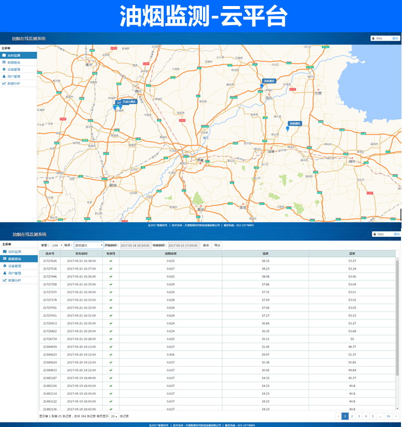 ◆ 監(jiān)控中心:平臺(tái)軟件主要完成數(shù)據(jù)采集、管理、查詢、統(tǒng)計(jì)和報(bào)表等功能。方便環(huán)保局執(zhí)法部門(mén)的有效執(zhí)法以及餐飲企業(yè)自行整改,定期清洗、維護(hù)凈化設(shè)備,實(shí)現(xiàn)油煙污染減排的目的。