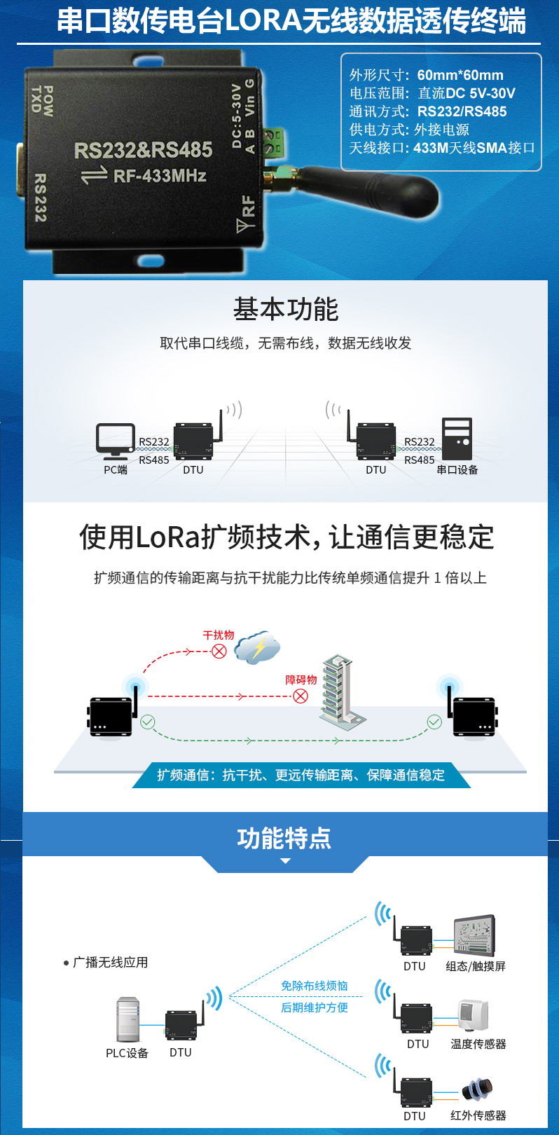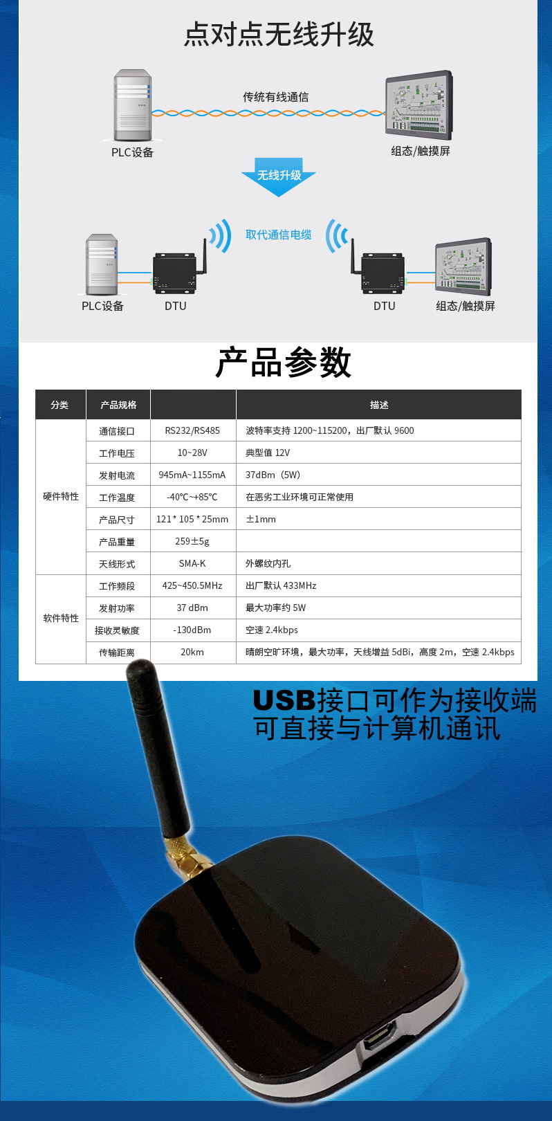 串口無線電臺(tái)RF無線數(shù)據(jù)透?jìng)鹘K端