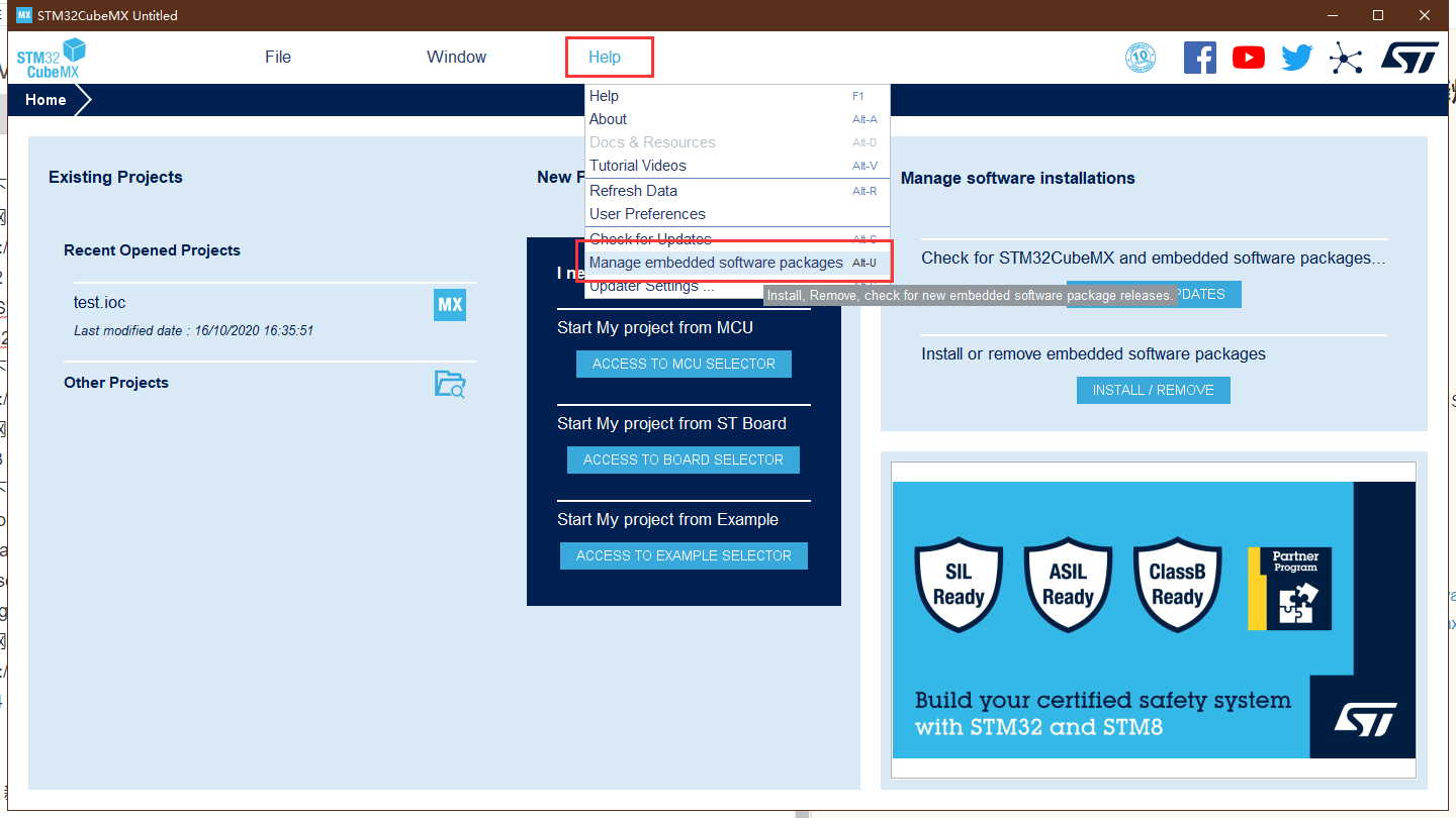 Help -> Manage embedded software paclages