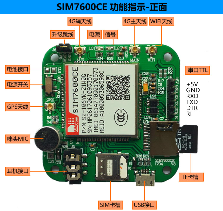 4G模塊為SIM7600CE全網(wǎng)通:支持移動(dòng)、聯(lián)通、電信 2G/3G/4G網(wǎng)絡(luò)