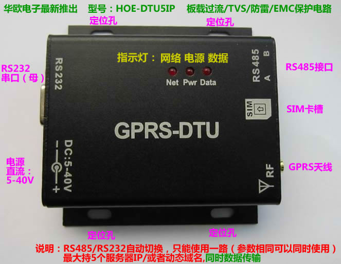 1、支持最大5個(gè)IP服務(wù)器或者動(dòng)態(tài)域名綁定,五個(gè)服務(wù)器同時(shí)收發(fā),不是備份服務(wù)器,而是同時(shí)登陸、同時(shí)接受GPRS數(shù)據(jù);支持最大5個(gè)IP(或動(dòng)態(tài)域名),最大支持2048個(gè)字節(jié),帶512K緩沖器。