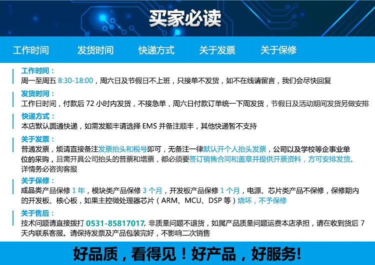 6、 單排6*2.54間距排針,方便二次開發(fā)。
