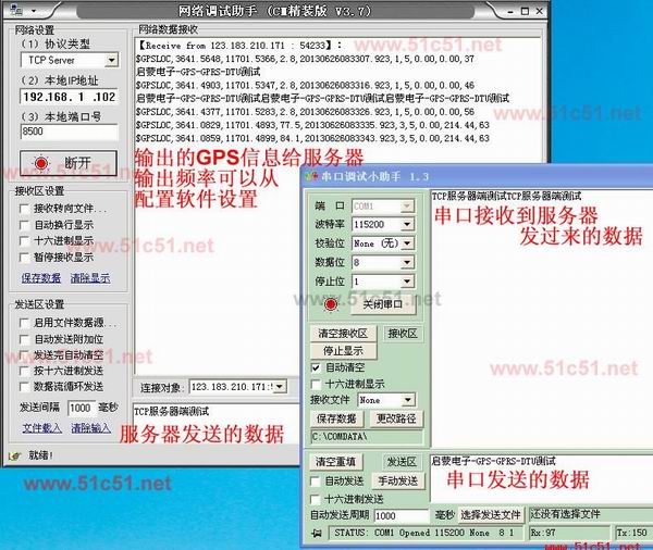 串口也會(huì)收到五個(gè)服務(wù)器發(fā)來(lái)的數(shù)據(jù):