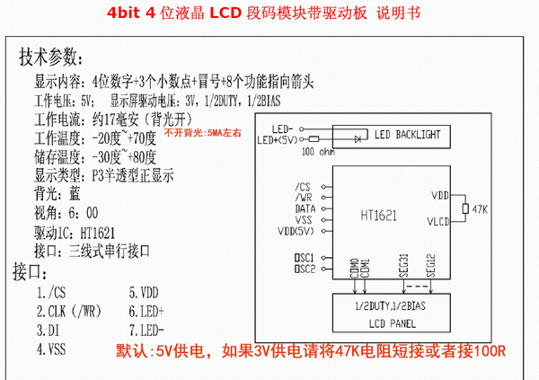 LCD段碼液晶,板載HT1621驅(qū)動(dòng)芯片,CPU直接驅(qū)動(dòng)即可!