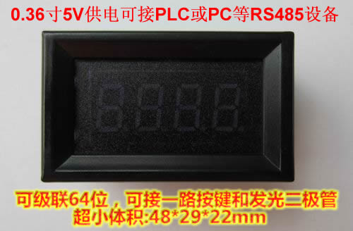 0.36寸四位數(shù)碼管模塊RS485接口,電壓?jiǎn)?V供電??梢约?jí)聯(lián),地址控制顯示,操作簡(jiǎn)單,只需按規(guī)定發(fā)數(shù)據(jù)給模塊,LED就能及時(shí)顯示。支持小數(shù)點(diǎn)0-9數(shù)字以及ABCDEF和HLnuUPo-等字符顯示、可以8級(jí)亮度調(diào)節(jié),支持波特率修改保存。最大級(jí)聯(lián)支持64個(gè)。
