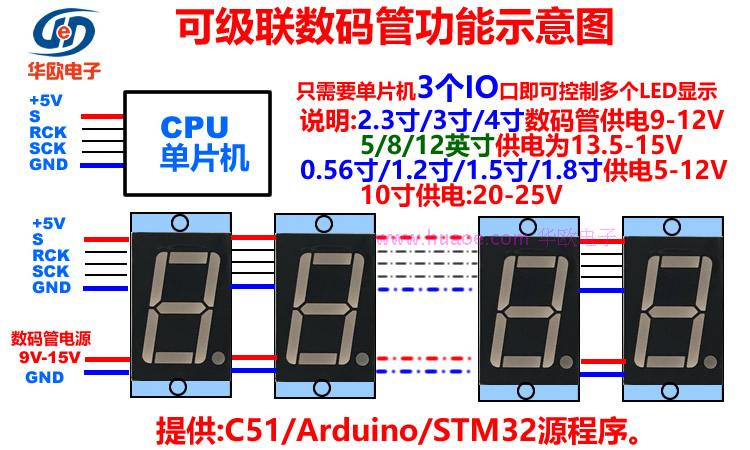 只需要單片機(jī)3IO口既可以驅(qū)動多個LED數(shù)碼管級聯(lián).