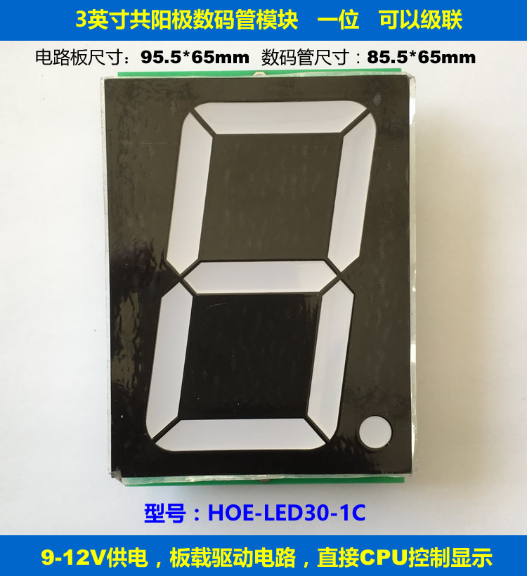 一位3寸共陽級(jí)數(shù)碼管模塊,可以級(jí)聯(lián)。供電電壓9-12V