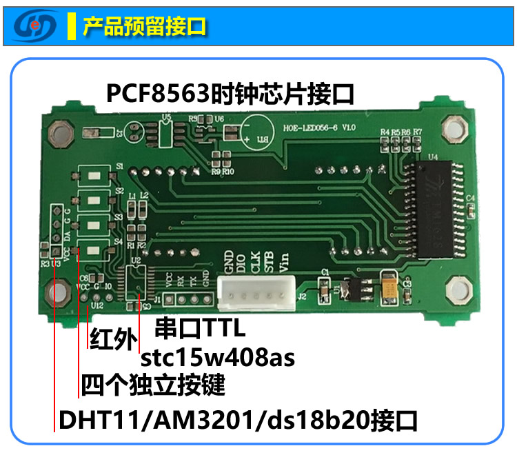 6、預(yù)留單片機(jī)串口TTL接口:可以升級(jí)單片機(jī)程序,也可以實(shí)現(xiàn)串口發(fā)數(shù)據(jù)顯示到LED數(shù)碼管;